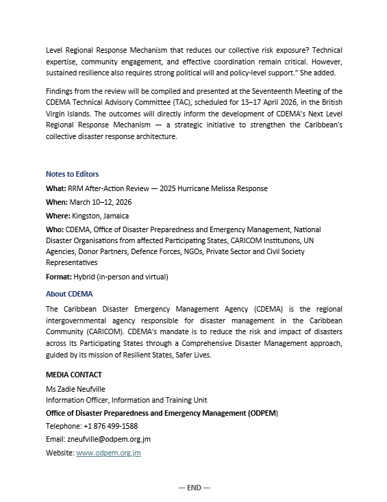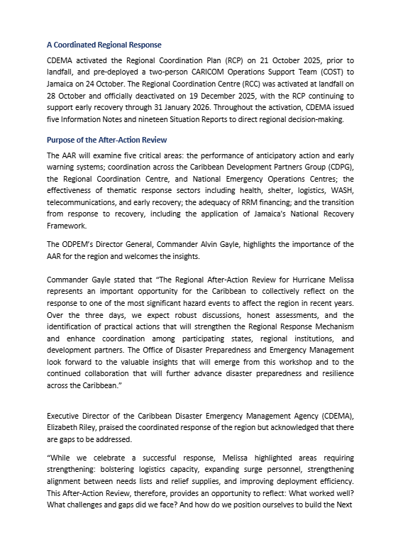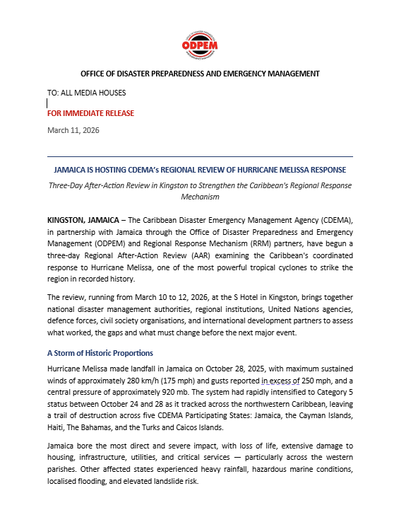 JAMAICA IS HOSTING CDEMA’S REGIONAL REVIEW OF HURRICANE MELISSA RESPONSE